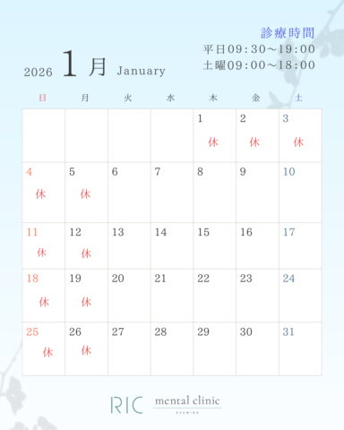 1月の診療日は画像の通りになります。